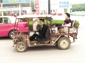 昨日,商水一农民驾驶着自己私自改装的车在路上“狂奔”。据介绍,这辆改装车是电动的,由破三轮车车箱、四轮车轱辘等零件组装而成。对此交警提醒,私自改装车违法,一经发现改装车上路将予以暂扣,并根据相关规定对驾驶者处罚,请大家不要模仿。