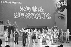 2011年7月22日晚,河南人民会堂座无虚席,美酒飘香,水袖飞扬。来自郑州的宋河经销商和消费者2000多人齐聚一堂,由宋河酒业股份有限公司主办的首届“宋河粮液梨园名家演唱会”好戏开锣,著名的豫剧名演员汪荃珍等和梨园春擂主一道演唱了著名豫剧《花木兰》、《朝阳沟》和《香魂女》选段,著名笑星范军也有精彩表演。