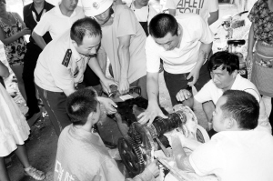 由于刘某右手的4根手指被搅面机上下两个滚轴紧紧“咬”住,稍一动弹,就疼痛难忍。消防官兵仔细检查发现,要想把搅面机的滚轴拿掉,必须先把起固定作用的钢筋棍破拆掉。