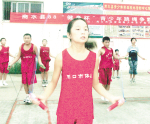 8月8日是“全民健身日”。为迎接“全民健身日”,贯彻《奥运争光计划纲要》,提高业余训练水平,昨日,周口市体育局青少年苗子选才基地在商水县青少年活动中心举行了跳绳争霸赛,活动吸引了近百名选手积极参与。晚报记者 马治卫 摄 线索提供 李冰