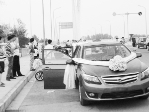 8月9日傍晚,两辆待售的小轿车停靠在周口市区大庆路桥南头,吸引了不少市民前来咨询。