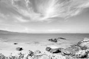 “赶海啰!”一声无言的呼告把黑夜唤醒,眼前又荡涌着海天一色的澎湃。海是经典,浪是经典里一字一字蹦跃着的恩爱愁怨。多想在这蔚蓝色的海面狂舞或者酣睡呵……不,唯有狂舞,不可止息的生命的狂舞,才能追随波涛的击打,让心走得更深更远。海天之间,心域之内,很少的实物,很多的空白,却能让人充满想象与敬意,虚拟一种人生,回望那片空灵,胸臆之间便有风云际会时的奔放与激荡。海犹在,历史犹在,当下与未来就不会失语。海也在狂舞,海呀,以波浪滔滔的言语,放声叙说深藏着的人间奥秘,洗涤并清醒着人的魂灵。没有海的滋养,人们的心会变得落落寡欢,如同日落的旷野,没有光亮与声响!我轻移我的双脚,漫步。然后面向飞沙滩那蔚蓝的海面和海面上霞彩飞扬的蓝天,注目。这里,除了阳光与星光每日每夜轮番照耀,充盈得最多最深最丰沛的,却是一种浸入血液的寂静,思想者拥抱世界的寂静。