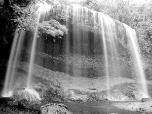 冬季枯水期,瀑布不见了,却可以观看到另一番景致。在熔岩床上,游人可发现大小深浅不等的熔洞,这些熔洞,犹如人工凿琢般光滑圆润,十分别致。环潭的黑古壁,是一个天然的回音壁,可与北京天坛公园的“回音壁”相媲美。