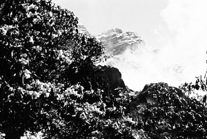 登至半山腰的时候,满眼的密集的野生杜鹃花灌丛,竟是绵延了有20公里的“花海”。野生杜鹃花仪态万千,风情万种,或古雅挺拔,或俊秀扶疏,或苍劲向天;或素淡无华,或娇艳欲滴,或坚实壮硕。颜色更是数不过来的多彩,色泽饱满,粉色、黄色、绿色、紫色、红色,而且每一种颜色又自己“调配”出诸多个色系来,比如浅红、殷红、洋红、橙红等等,颜色多得叫不过名来。