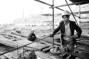 昨日,在东新区体育场建设工地,工人们忙着施工。