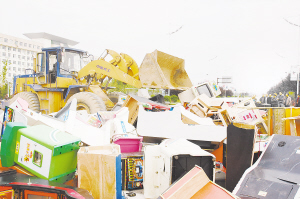 9月20日上午,西华县安康大道旁的一片空旷场地上,300余台赌博游戏机堆放在一起。随着西华县公安局指挥人员一声令下,一台大型铲车轰鸣着开进现场,随着一阵噼噼啪啪的碾压,这些赌博游戏机顿时变成齑粉(如图)。