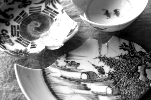 在沙颍河打捞的青花瓷片。(周家口漕运青花瓷博物馆藏品)