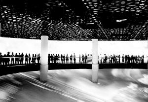 9月28日,观众在“月亮船”内参观。当日,被誉为“月亮船”的原上海世博会沙特馆正式对公众重新开放,成为上海世博会闭幕后首个“复出”的外国国家馆。集艺术创意与高新科技于一身的上海世博会沙特馆总投资超过10亿元人民币,其颇具震撼效果的巨幕影片在世博会上人气极高。据了解,目前沙特馆仅开放团队预约,暂不销售个人票,基准票价为60元。新华社发