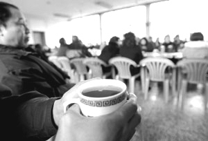 坐大厅的大多是退休20多年的老一辈,他们见面,如同点名。有的来,有的不来,有的想来走不动了,有的永远来不了。老职工面面相觑,长吁短叹。