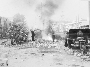 11月2日上午,在商水县备站路南段,有人在路边的人行道上燃烧垃圾。当街焚烧废品垃圾,既污染环境,又影响交通,路人对这种不文明的行为纷纷指责。晚报记者 马治卫 摄