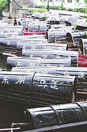 一篇《兰亭集序》,让世人记住了绍兴西南山麓上的这一座亭台。如今的兰亭,除了原有的亭台,多了王右军祠、御碑亭、古驿亭等。因此去兰亭,不单是为了欣赏让王羲之发出“仰观宇宙之大,俯察品类之盛,所以游目骋怀,足以极视听之娱,信可乐也”这番感慨的美景,还为了感怀文人墨客们的风雅。“曲水流觞”是这里著名的景点之一。文人雅士们都喜欢来这里效仿古人赋诗饮酒。一条“之”字形的曲水缓缓流过,盛着美酒的酒杯从上游悠悠晃晃地漂下来。两边岸上错落地放置着蒲团,人们席地而坐,酒杯停留在谁的面前,谁就要即兴赋诗一首。