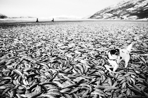 现年44岁的挪威男子约根森近日在海滩边遛狗,无意中发现了海滩上成群的死鱼,已经发臭。这些鱼据估计重20吨左右,密密麻麻地堆在一起。约根森说:“人们说上世纪80年代也发生过类似的事情。也许这些鱼被困在缺氧环境中,因处于淡水中而死亡?”有关报道称:这次事件无疑为相信“玛雅预言”指2012年是“世界末日”的人们增添了“火力”。