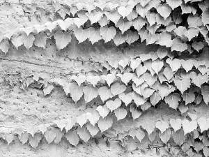 夏天:爬山虎换上了深绿色的衣服,它们像好朋友一样手拉手地趴在了墙上,让人感到一阵阵清爽。