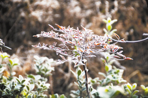 相关链接:雾凇是寒冷冬季才能见到的一种类似霜降的自然现象,它其实也是霜的一种。颗粒状霜晶称为雾凇,它是由冰晶在温度低于冰点以下的物体上形成的白色不透明的粒状结构沉积物。特别大雾过后,由于温度急剧下降,雾气凝聚在树木的枝叶上,而形成白色散冰晶称为“雾凇”或“树挂”。因其美丽皎洁、晶莹闪烁,像盎然怒放的花儿,又被形象地称为“冰花”、“琼花”、“傲霜花”等。