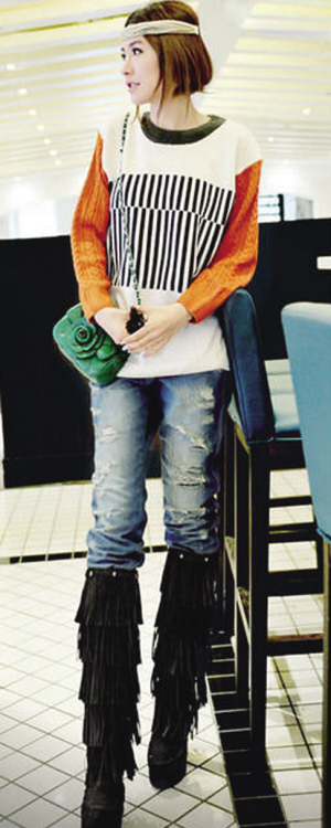 一款个性时尚的潮物针织衫搭配,搭配其实超简单的哦!你可以再内搭配上一款长款的吊带,内长外短也是很时尚的一种 搭配技巧哦!