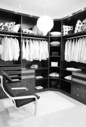 门厅过道、壁橱或卧室内部的平面位置可以考虑安置一字形收纳衣帽间,不要低估了此类衣帽间的容量,只要动足脑筋,合理划分收纳区间,同样可以让你的家居生活远离凌乱无序。墙面的转角空间是L形收纳衣帽间的最佳落脚点,L的造型丰富了视觉上的层次感,看上去小巧精炼。U形收纳衣帽间适用于相对宽敞的房间,三面围合的设计结构,充分预留中部开阔区域,可尽情享受换装带来的乐趣。