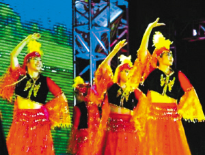 2月1日,中国羽毛球队女单运动员在表演舞蹈《掀起我的盖头来》。中国羽毛球队新春晚会当日在国家体育总局进行。(腾体)