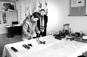 本报讯 2月5日,记者在“中国书法之乡”郸城偶遇一位双手表演书法艺术的奇人,更令人惊叹的是,他居然还是一位聋哑人。他叫黄海青,1980年出生在郸城县城郊乡,1岁时因药物中毒丧失听力;8岁时因字体漂亮被县特殊学校选中,获得免费接受教育机会;16岁他开始参加国家级书法比赛;如今,他是中国书法艺术家协会会员,与我国著名的《千手观音》表演团队一起,经常被选派到国外表演。