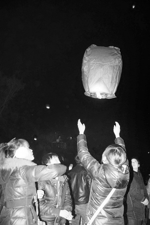 元宵节晚上,项城一些市民不顾安全隐患放飞孔明灯。