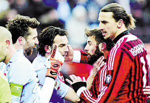 本报综合消息2月6日,意甲第22轮的一场焦点战以平局收场,AC米兰在少一人的情况下与劲敌那不勒斯互交白卷,而全场最具争议的一幕出现在全场第64分钟,伊布在裁判吹停比赛的情况下掌击对方中卫阿罗尼卡,吃到红牌被罚下场。