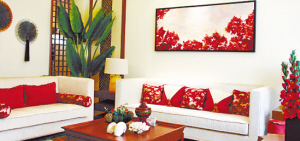 中国的吉祥色是红色,无论中式风格、欧式风格,还是中西结合的风格,都可以用红色把它统一起来,当然,不同的风格运用红色有不同的技巧。
