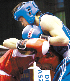 2月11日,中国选手常勇(上)与韩国选手申东明在比赛中。当日,在匈牙利东部城市德布勒森举行的2012年匈牙利博奇考伊·伊什特万国际拳击纪念赛52公斤级决赛中,常勇以21比11战胜韩国选手申东明,夺得冠军。