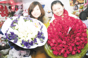 昨天,在周口市区七一路一家鲜花店里,两位女孩被眼前的99朵玫瑰所吸引。今天是2月14日情人节,他给你送玫瑰了吗?或者你送出玫瑰了吗?晚报记者 朱海龙 摄