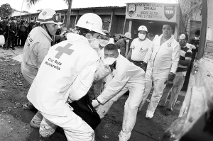 2月15日,工作人员在洪都拉斯发生火灾的监狱搬运尸体。新华社发