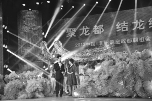 昨日20时许,淮阳人民会堂歌舞欢腾。当晚举办的“聚龙都 结龙缘”2012中国·淮阳羲皇故都朝祖会开幕式晚会众星云集。著名歌手高胜美、高明俊等倾情献艺。著名主持人王雪纯、任鲁豫主持晚会。