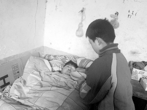 由于家庭一贫如洗,小博文母亲和奶奶的医药费都是亲戚们给凑的。村里的邻居也没少帮助他家,小博文身上的衣服和鞋袜都是邻居给的。