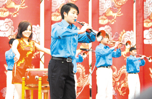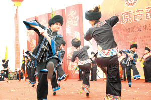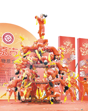 本报讯 伴随着熙熙攘攘朝祖的人流,2月24日上午,“中原古韵——中国(淮阳)非物质文化遗产展演”开幕式在淮阳羲皇文化广场举行。当天上午进行的首场展演活动中,共有11个国家级非遗项目登台亮相。少林功夫、山东快书、安徽黄梅戏、陈式太极拳、河北狮舞、山西高台花鼓、湖北五峰南曲、湖南土家族摆手舞、江西九江山歌等国家级非遗精品荟萃淮阳,集中展示了古韵之美。