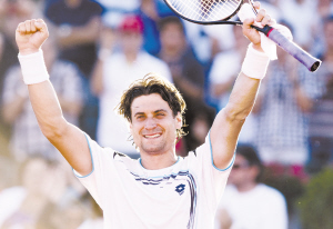 2月26日,西班牙选手费雷尔在赛后庆祝胜利。当日,在阿根廷网球公开赛决赛中,费雷尔以2比1战胜同胞阿尔马格罗,获得冠军。