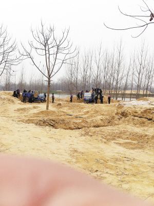 2月25日15时许,记者从周口大道沙河大桥处沿沙河南岸向东步行走过陈滩埠口不太远,就能看到两岸有星星点点的砂堆,水里还有抽砂用的管子,不过很少看到有人作业。