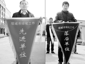 本报讯 2月28日,项城市召开城市绿化工作考评会,会上对该市信用联社等3个绿化工作先进单位和部门授予红旗、通报表扬。对项城市人民路小学等3个绿化工作落后的单位和部门挂黑旗、通报批评(如图),并责成这3个单位的相关责任人在当地电视台做表态发言。据了解,此举在项城市尚属首次。