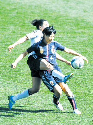 3月7日,日本队球员熊谷纱希(前)在比赛中争抢。当日,在葡萄牙举行的2012年阿尔加夫杯女足邀请赛决赛中,德国队以4比3击败日本队,夺得冠军。