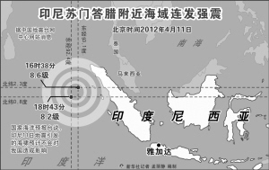 地震发生于当地时间15时38分,震中位于亚齐省锡默卢岛西南346公里处,震源深度10公里。印尼地震监测部门最初公布的震级是8.9级,后修正为8.5级。此次强震发生后,震中又发生数次6级以上余震。