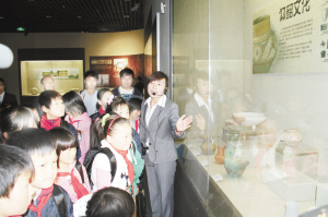 4月14日上午,周口市博物馆迎来了一批特殊的小客人,他们是来自周口市东新区许湾乡李灵希望小学的60名小学生。周口市博物馆邀请他们来参观,让孩子们第一次直面感受家乡的厚重历史。自此周口市博物馆将成为留守儿童的第二课堂,为他们打开一扇通向外面世界的窗口。周口市博物馆馆长周建山表示:“我们争取把博物馆作为一个爱国主义教育阵地,作为他们开展历史和文化学习的第二课堂。我们今后将举办更多活动,每年定期请学生们来博物馆参观学习。” 晚报记者 王晨 摄 线索提供 穆乐