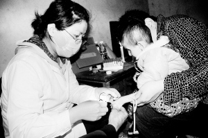 当日16时45分,来自第四军医大学DNA分型中心的孙茂、王国霞等专家一行4人,带着医疗设备,冒雨赶到侯庄村。“孩子的牙齿啥时间开始松动?眼窝啥时间开始凹陷的……”孙茂、王国霞一走进桑家,就询问桑紫宣、桑紫恒的病情。孙茂仔细查看了二人脸上的“老年斑”、干枯的小手,还详细询问了二人的病史,并作了认真记录。随后,王国霞为桑紫宣、桑紫恒及其父母、爷爷奶奶抽取了血样。