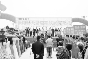 本报讯 4月29日至5月1日,由淮阳县人民政府、周口日报社主办,淮阳县住建局、羲皇文化广场管理办公室和周口晚报社承办的2012春季淮阳大型房车联展在淮阳羲皇文化广场隆重举行(如图)。适逢五一假期,楼盘、新车集中亮相赚足了人气。