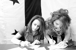 5月7日,选民在叙利亚首都大马士革的一处投票站填写选票。