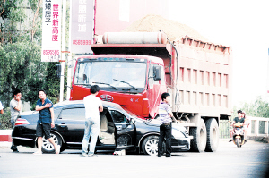 5月6日下午6时许,在周口大道大桥北侧,一辆货车和一辆轿车相撞。轿车上一男子介绍,轿车被货车向前推行30多米,所幸没有造成人员伤亡。目前,事故民警已介入调查。