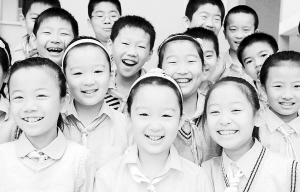 5月7日,山东省枣庄市市中区鑫昌路小学学生参加微笑比赛。