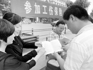 为了进一步扩大工伤保险的社会影响力,做好社会保险法和新修订《工伤保险条例》的宣传普及工作,省人力资源和社会保障厅于5月12日至16日在全省范围内集中组织开展现场宣传咨询活动。据悉,我市参加工伤保险人员已达近30万人,有近3000名工伤人员享受到保险待遇。晚报记者 张洪涛 摄