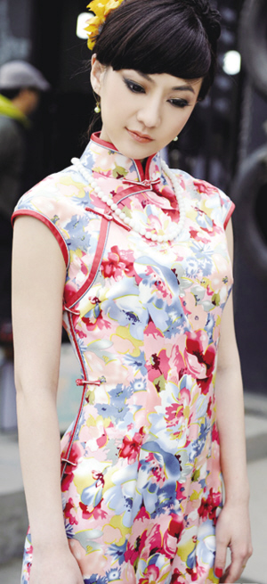 如果你选择了一件适合自己气质但稍显低调的旗袍,发型和妆容上就要制造亮点!很多人平时都是及肩卷发,这时候可以往后梳理造型!在两边简单地编出辫子,然后再利用松散卷发在脑后造出一种自然的凌乱状态,一片整齐的刘海梳往旁边定形,这样的发式会显得古典而又不失活泼。