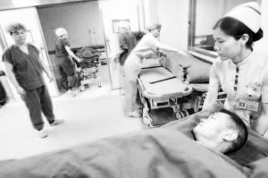 5点57分,李秀英夫妇一前一后被推进手术室。就在妻子离开视线的一刹那,刚刚还平静的许臣金突然战栗不语,眼泪夺眶而出。