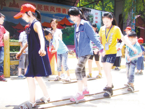 看一看二郎神,摸一摸真飞机,“飞渡”惊险吊桥,漫游水上栈道,蹦蹦跳跳竹竿舞,快乐接力踏板赛……5月26日,本报组织小记者及家长一行近150人奔赴二郎山开展亲子游活动。
