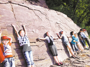 二郎山的山水美景,令小记者们陶醉。行走其间,小记者们玩兴大发,欣赏美景的同时,水枪、铁环还成为他们的最爱,每走一处都引得其他游客的注目。