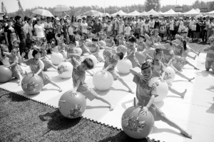 本报讯 5月26日上午,阳光明媚,市体育中心的足球场上热闹非凡,由市妇联、市教育局、市体育局联合举办的庆“六一”幼儿体操展演赛在此举行,周口市区11家幼儿园的1000多名小朋友前来参赛,共同预祝“六一”儿童节的到来。