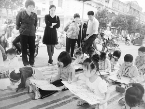 6月1日上午,来自西华县多家幼儿园的100余名“小画家”齐聚女娲广场,用手中的画笔展示心中的梦想。该县爱心人士李晓华还专门为这些“小画家”们购买了画笔、画纸等用品。瞧!孩子画的多专心呀!