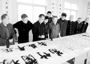 近日,太康县转楼乡成立了一个由30余名老人组成的夕阳红书画院,给当地不少老年人的生活带去欢乐。据悉,该书画院定于农历每月初八、十八、二十八为活动日。图为书画院的老人挥毫泼墨。